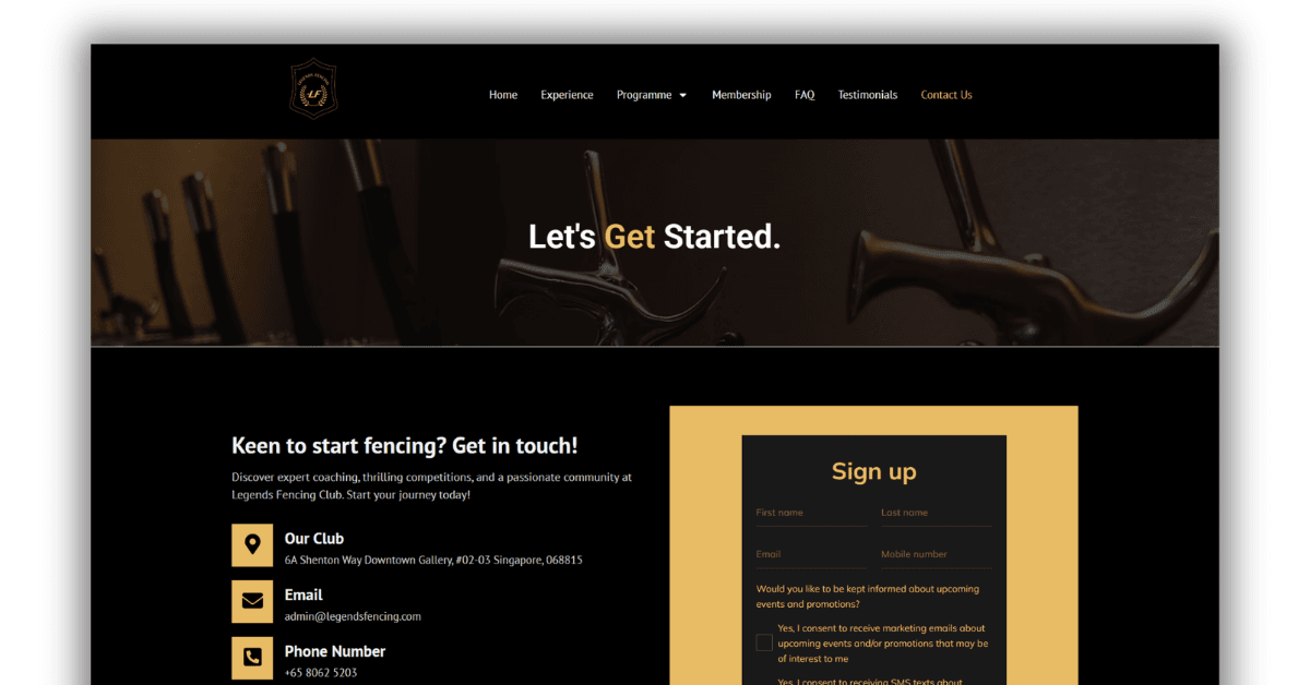 A luxury sports and lifestyle platform developed for Singapore’s premier adult fencing club. This project balances an elegant, high-contrast visual identity with a robust membership ecosystem, delivering a seamless booking experience for professionals in the heart of the CBD.