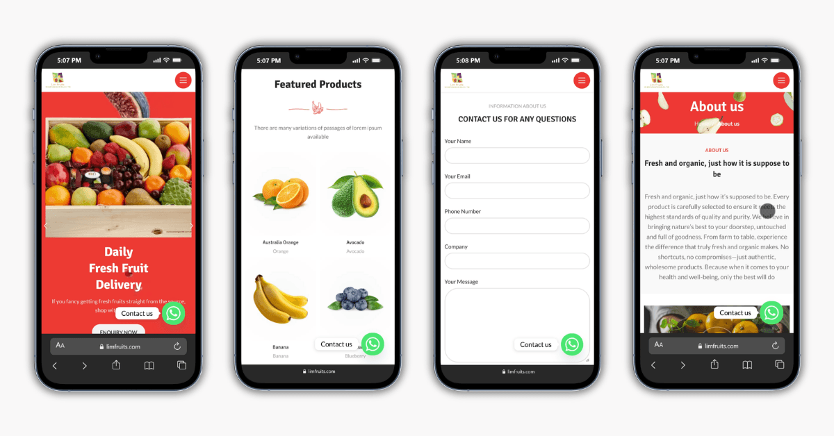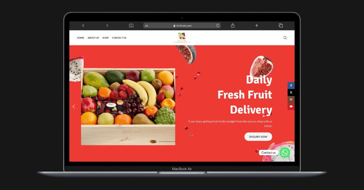 We built a premium fresh-produce portal with an integrated ‘Corporate Delivery’ inquiry system and a mobile-first shop interface, allowing customers to secure seasonal and exotic fruits through a seamless, high-performance interface.