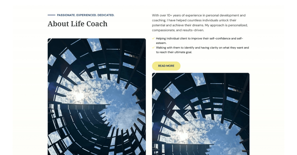 A comprehensive personal development platform developed to bridge the gap between self-limitation and professional achievement. By combining a transparent service-discovery interface with a mobile-optimized coaching dashboard, the site delivers a ‘peace-of-mind’ journey for individuals seeking clarity, self-esteem, and actionable strategies for career and relationship fulfillment.